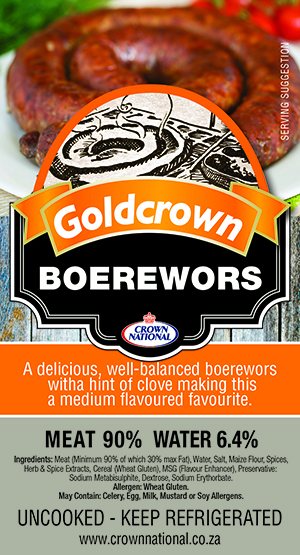 | Goldcrown Boerewors | View label | 74055 |
