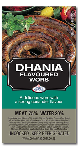 | Dhania Flavoured Wors | View label | 74202 |